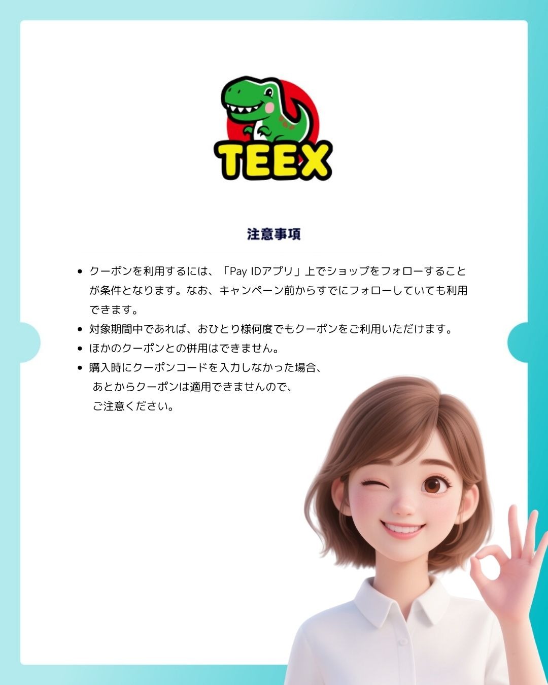 Pay IDアプリでTEEXをフォローしている方だけに、全商品10%OFFになるスペシャルクーポンをプレゼント!🎁