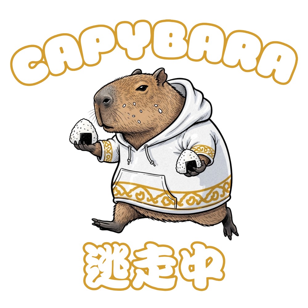 ユーモア満載!「カピバラ逃走中」おにぎり泥棒Tシャツ新登場!