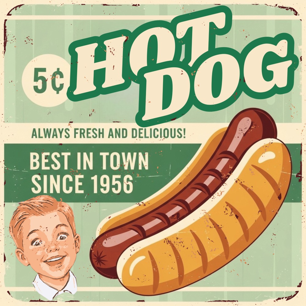 【あの頃の懐かしさを胸に】ホットドッグ看板Tシャツ - 5セントの幸せ、いつの時代も変わらない美味しさ!新登場!