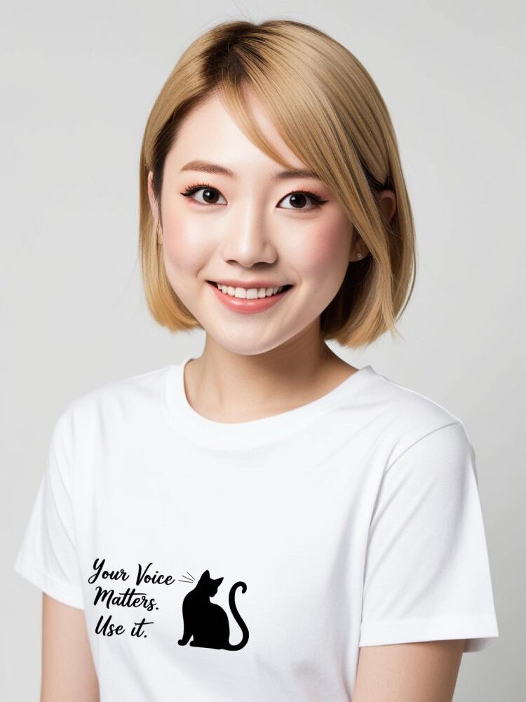 このTシャツは、シンプルながらも力強いメッセージが込められた、あなたの個性を表現するためのアイテム、「Your Voice Matters. Use It.(あなたの声には価値がある。)」という言葉は、私たち一人ひとりが持つ意見や考え、そして発言することの重要性を再認識させてくれます。