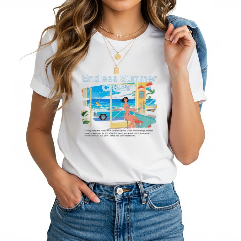 ビビッドな色彩と、懐かしさを感じるイラストタッチが魅力の「Endless Summer Cruisin'」Tシャツ。