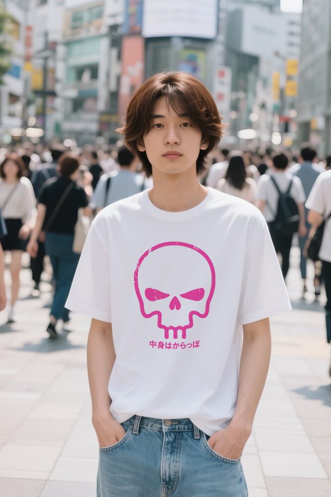【中身はからっぽ】ポップ&ダークなスカルTシャツ|ストリート×ユニークデザイン|ユニセックス対応