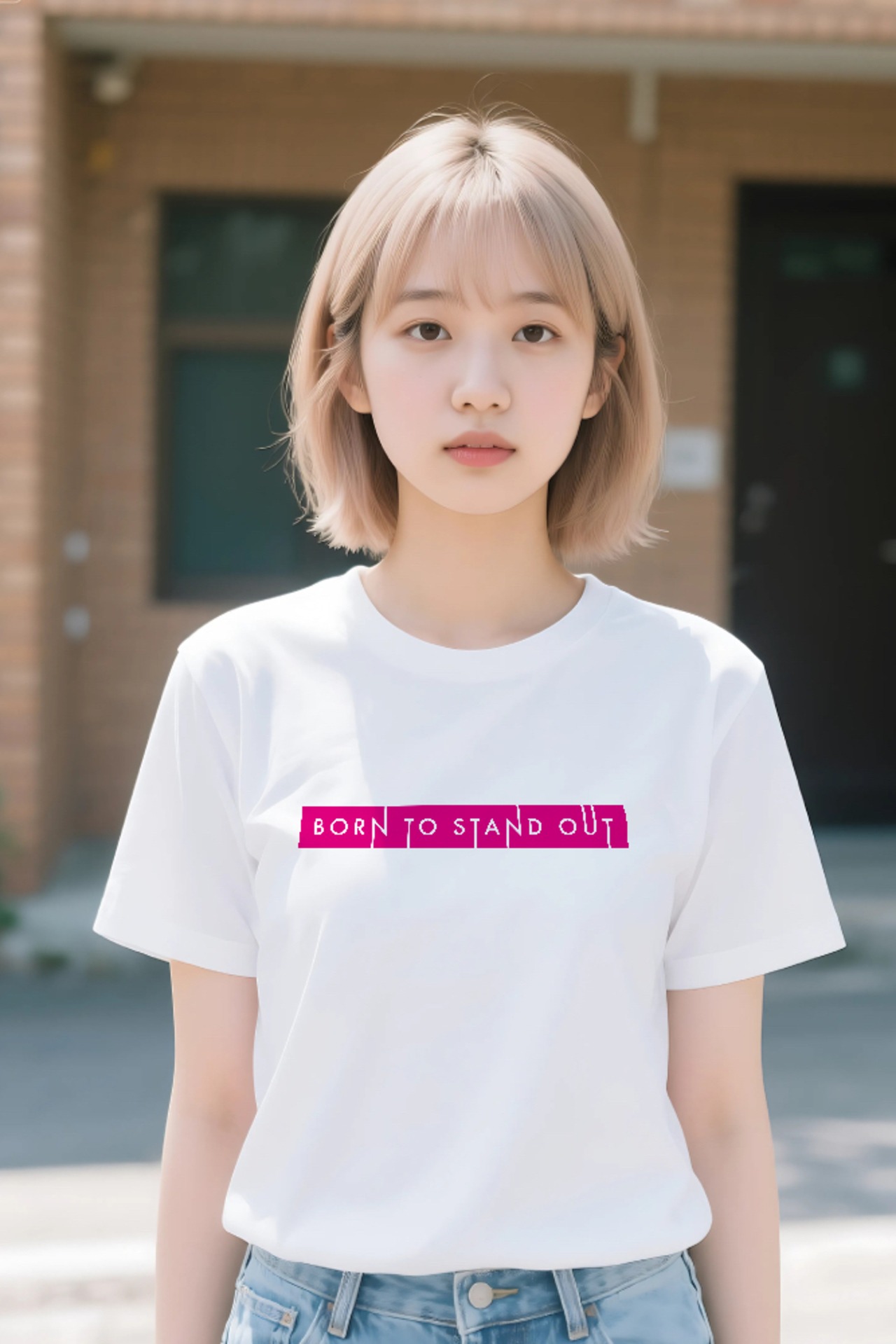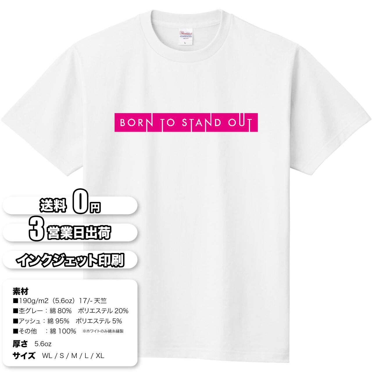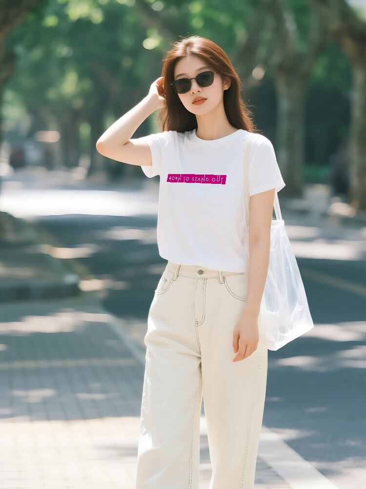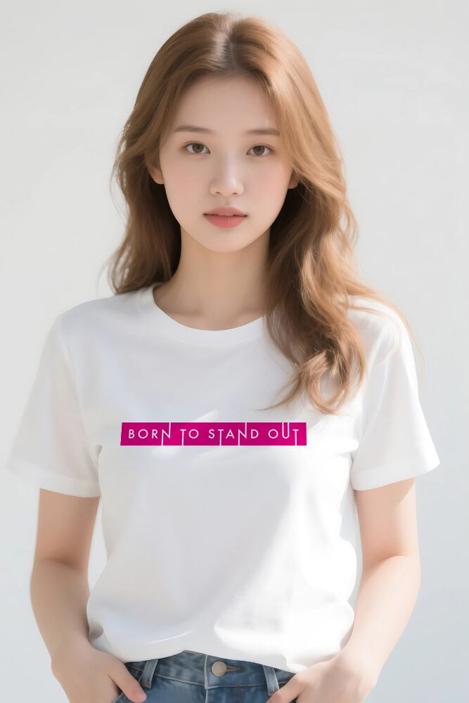 このTシャツは、あなたの個性を最大限に輝かせるための、大胆でパワフルなメッセージを込めた一枚です。「BORN TO STAND OUT(目立つために生まれた)」という言葉は、あなたが誰かの真似をするのではなく、あなた自身のユニークな魅力を堂々と表現することへの、力強い後押しとなるでしょう。
