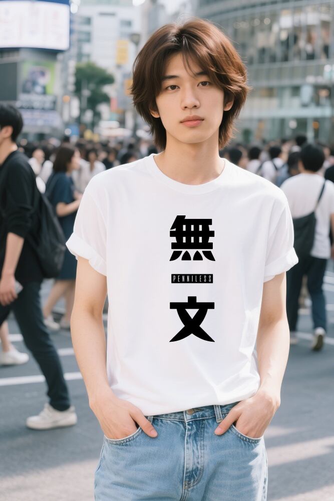このTシャツは、困難な状況に直面している方、新たな挑戦を始めようとしている方、そして何もないところから何かを生み出そうとしているすべての人へのエールです。無一文からでも、知恵と努力と情熱があれば、どんな状況からでも立ち上がり、成功を掴むことができる。そんな力強いメッセージを、この「PENNILESS」Tシャツは静かに語りかけます。
