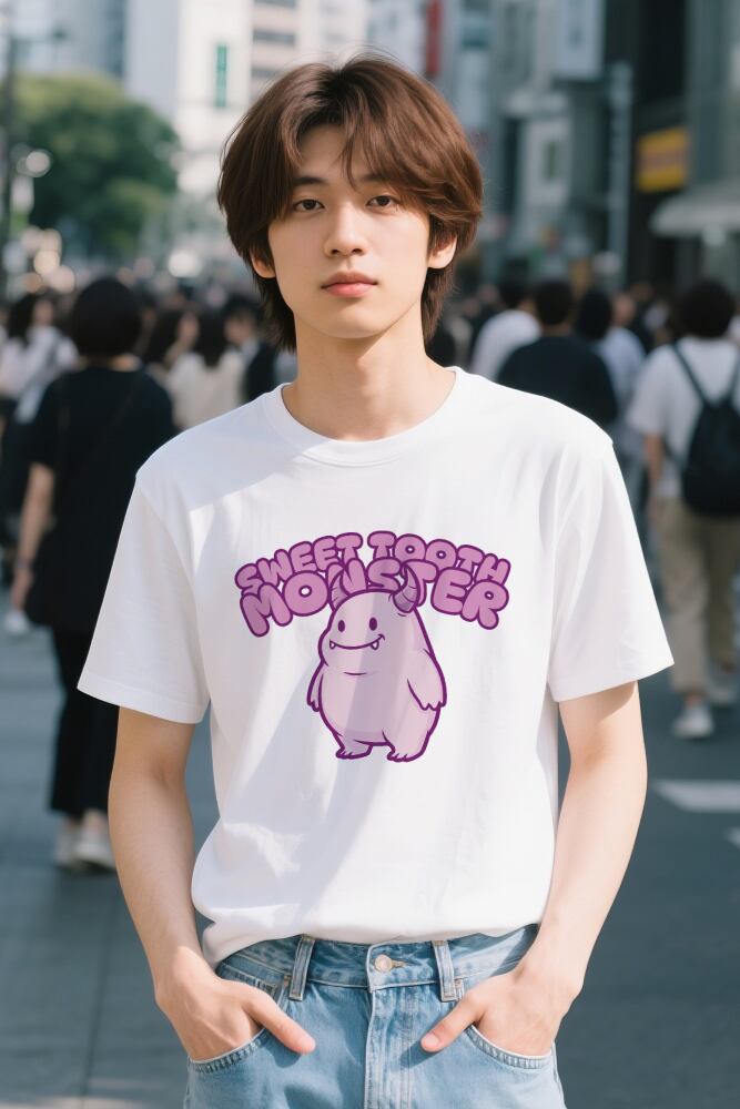 このTシャツは、スイーツ好き、可愛いキャラクター好き、ちょっと変わったデザインを探している方におすすめです。あなたのファッションに、甘くて楽しい遊び心をプラスしてみませんか?このキュートな甘党モンスターと一緒に、毎日をもっとハッピーに過ごしましょう!