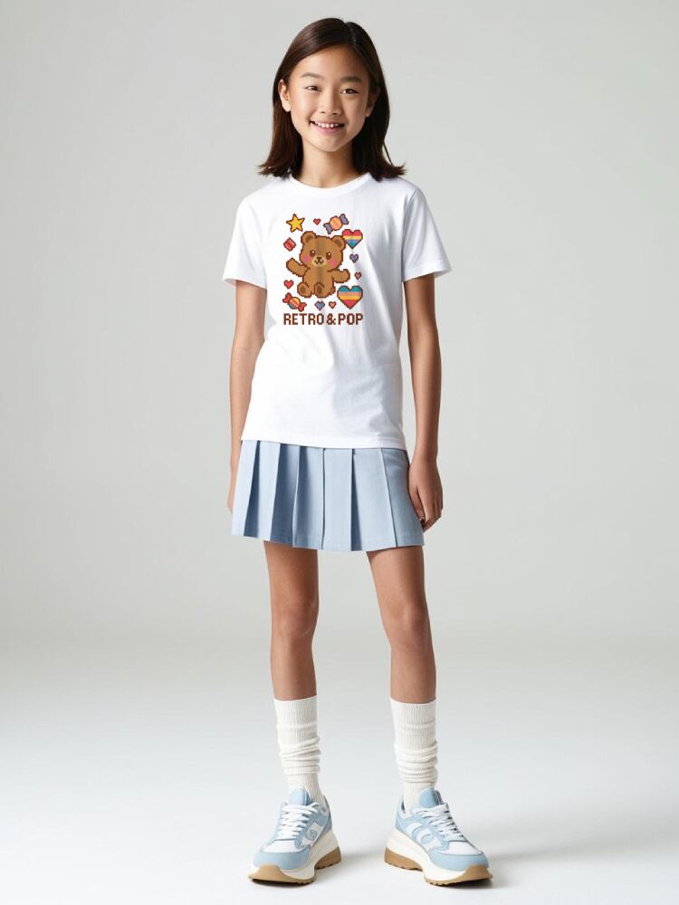 あなたのファッションに、遊び心と癒しをプラスしませんか? このピクセルアートのクマちゃんTシャツで、とびきりハッピーな毎日をスタートしましょう!
