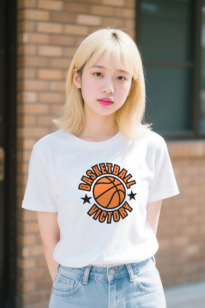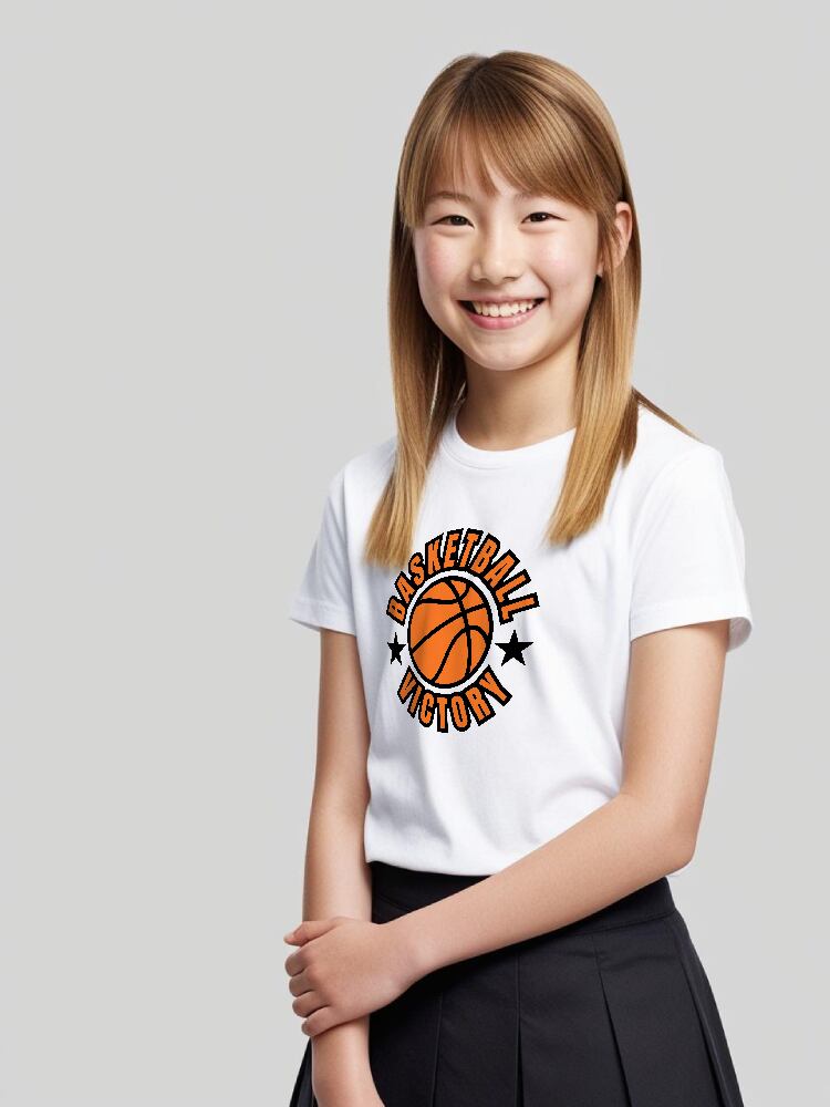 このTシャツにプリントされているのは、躍動感あふれるバスケットボールのグラフィック。中央に描かれた力強いバスケットボールと、「BASKETBALL」「VICTORY」の文字、そして輝く星が、バスケへの揺るぎない愛と、試合に挑むアスリート精神を象徴しています。コート上での勝利はもちろん、日々の練習や目標達成へのモチベーションを高める一枚となるでしょう。