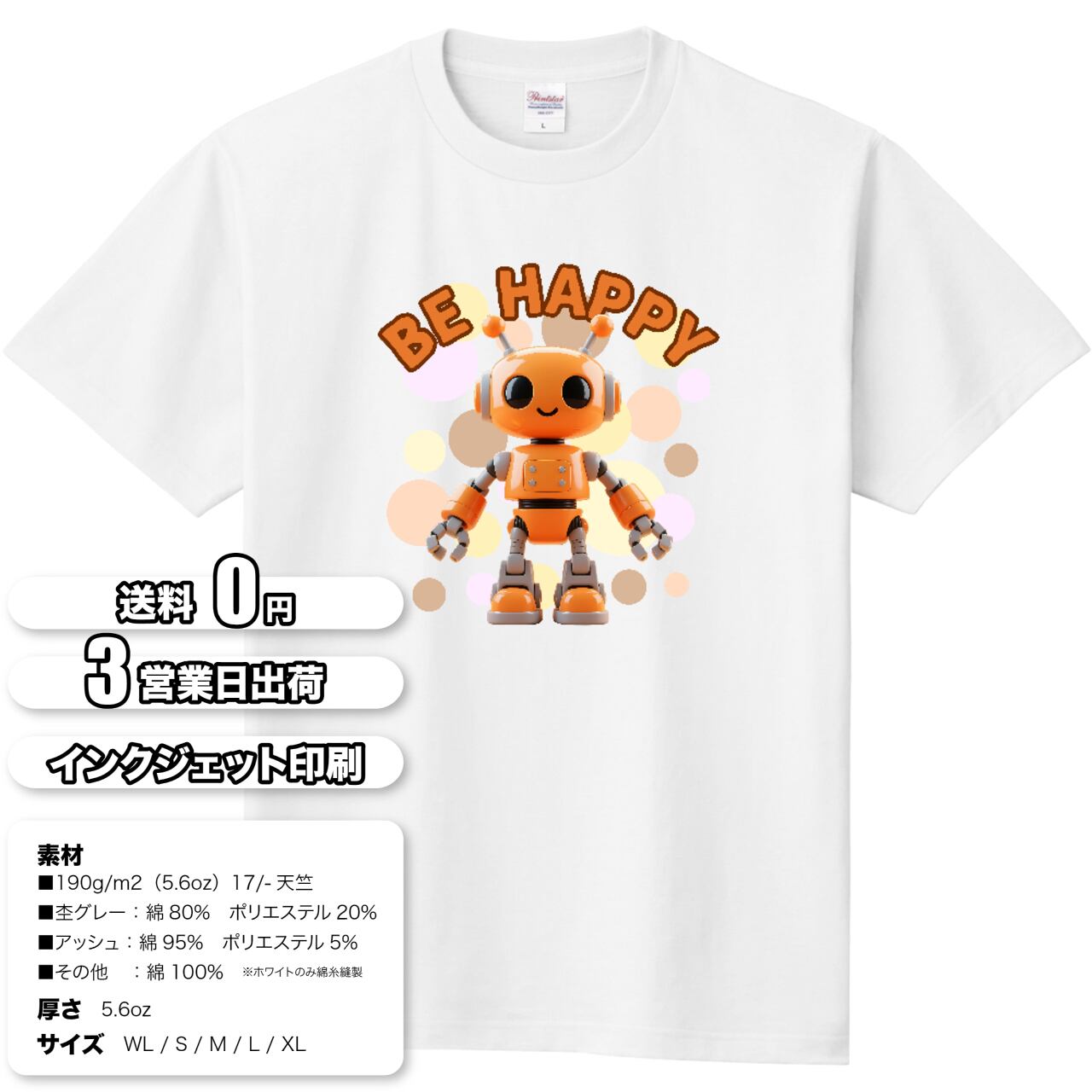鮮やかなオレンジ色と優しいグレーの色使いが特徴のキュートなロボットは、あなたの着こなしに遊び心と個性をプラス。ロボットの上部には「BE HAPPY」の文字が温かい色合いで配置され、見るたびに心に温かい光を灯してくれます。背景には、様々な大きさのパステルカラーのドットが散りばめられ、ポップで楽しい雰囲気を演出。どんなシーンでもあなたの気分を盛り上げてくれること間違いなしです。