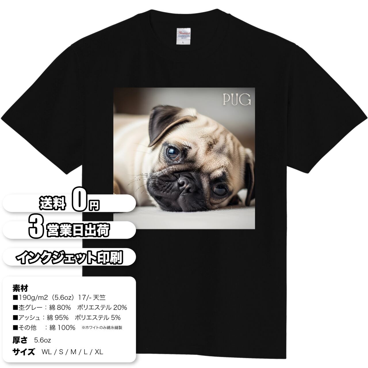 パグを飼っている方はもちろん、犬好きの方、動物好きの方へのプレゼントとしても喜ばれること間違いなしです。このアイテムを着て、いつでも大好きなパグと一緒にいるような気分を味わいませんか?