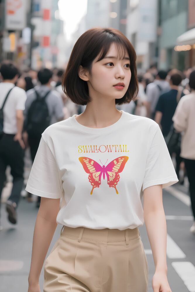 日々のカジュアルスタイルから、特別な日のコーディネートまで幅広く活躍する一着。アート、自然、そしてファッションを愛するすべての人へ。この美しいアゲハ蝶のデザインTシャツで、あなたの日常に彩りを加えてみませんか?ギフトとしても喜ばれること間違いなしです。