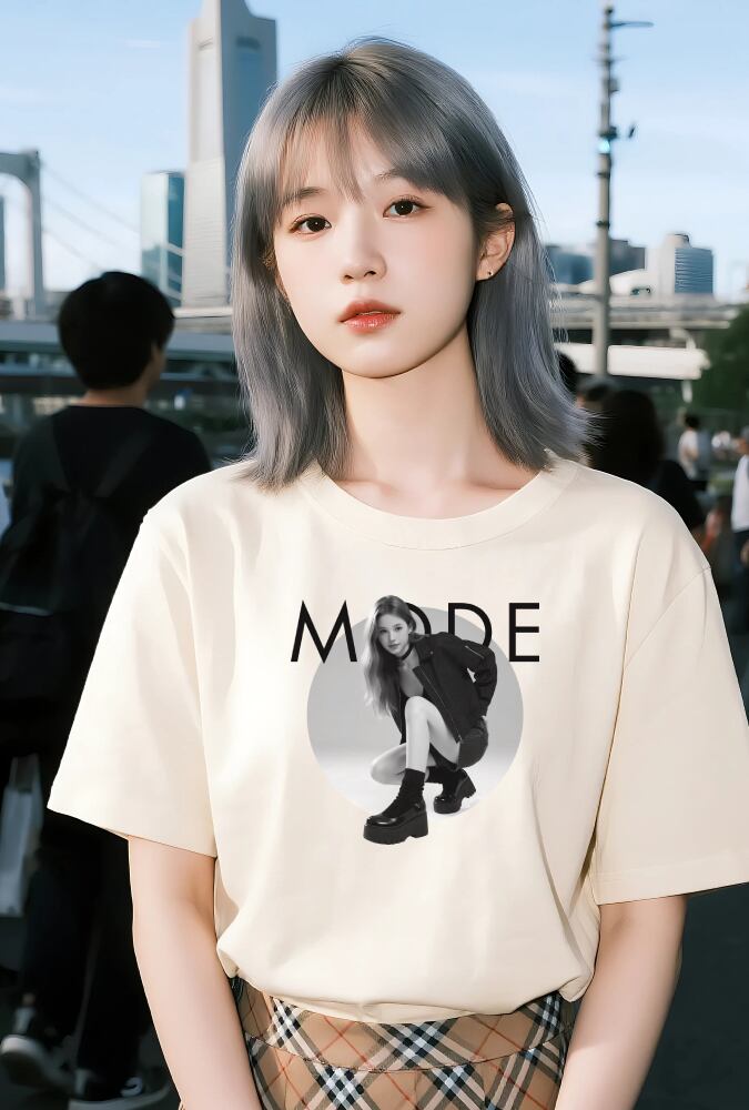 クールなストリートモード系Tシャツが登場。流行の韓国ファッションやストリートスタイルにぴったりの、モノトーンで描かれた女性のイラストTシャツです。