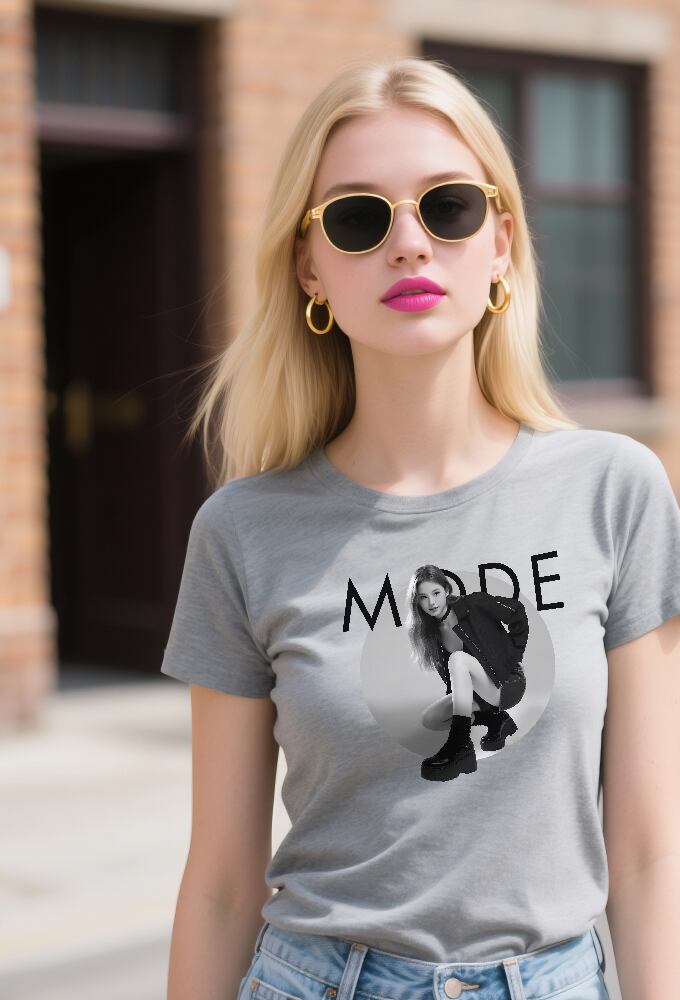 クールなストリートモード系Tシャツが登場。流行の韓国ファッションやストリートスタイルにぴったりの、モノトーンで描かれた女性のイラストTシャツです。