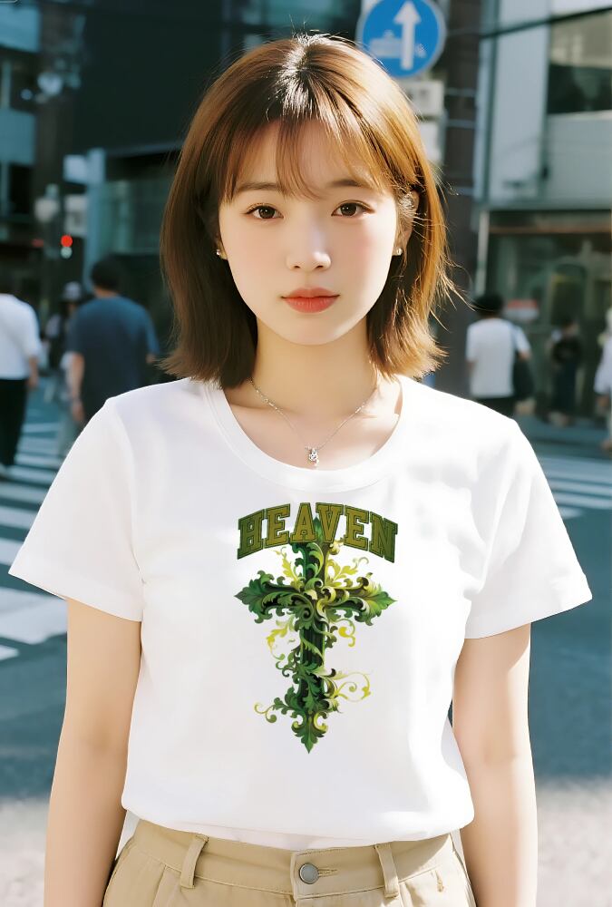 上部に大胆に配された「HEAVEN」の文字は、このクロスの荘厳さをさらに引き立て、天国への道しるべというメッセージを力強く示唆しています。信仰を大切にする方だけでなく、自然やスピリチュアルなアートを好む方にも響く、ユニークなデザインです。