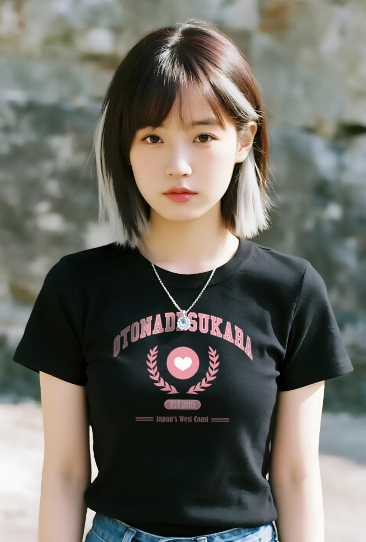 この「OTONADESUKARA(大人ですから)」Tシャツは、日本の「大人カワイイ」文化をテーマにしたデザインです。シンプルなピンクのロゴとハートが、どんなスタイルにも合わせやすい柔らかな雰囲気を演出します。