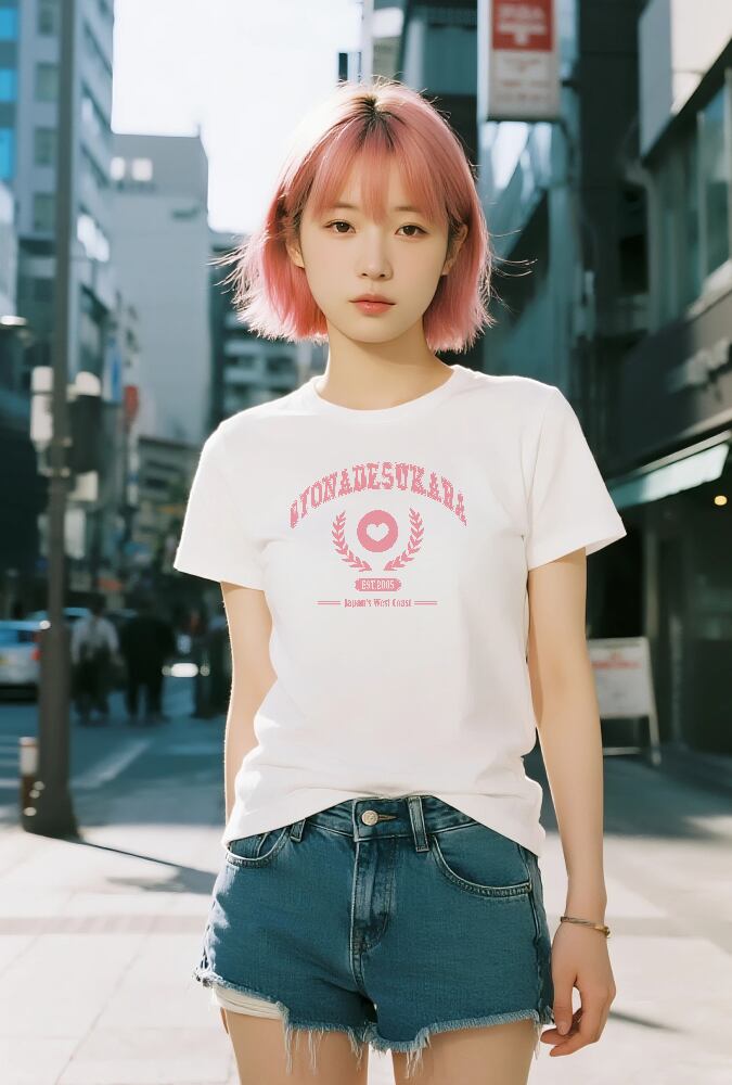 この「OTONADESUKARA(大人ですから)」Tシャツは、日本の「大人カワイイ」文化をテーマにしたデザインです。シンプルなピンクのロゴとハートが、どんなスタイルにも合わせやすい柔らかな雰囲気を演出します。
