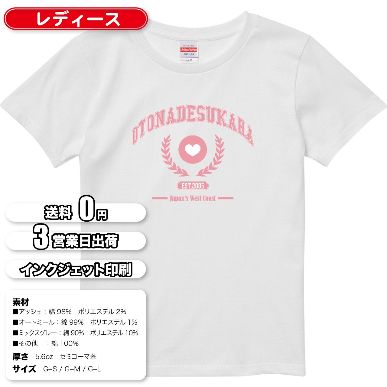 OTONADESUKARA (大人ですから) - 日本風カワイイ系Tシャツ | EST.2005 Japan's West Coast | TEEX(ティークス)オリジナルデザインのT-shirtを販売