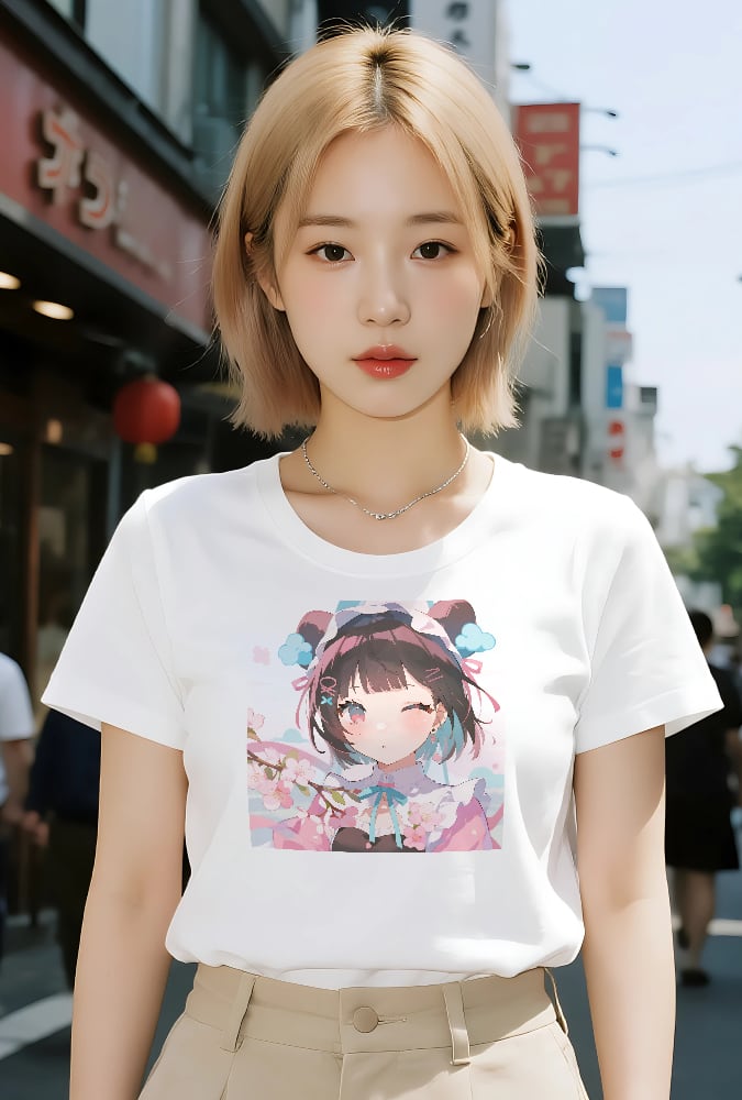 彼女の儚くも美しい世界観を表現するために、高品質なプリント技術を用いています。淡いピンク色から水色、そして桜の繊細なグラデーションまで、アニメーションならではの柔らかな色彩を忠実に再現しました。シンプルなボトムスと合わせるだけで、一気に華やかで個性的なコーディネートが完成します。デニムパンツやスカートはもちろん、和風のスカートやパンツと合わせれば、より一層世界観を楽しめるでしょう。また、春のお花見やイベント、普段使いにもぴったりなアイテムです。