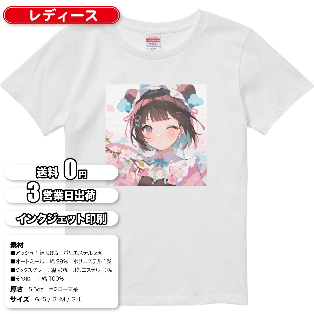このデザインに描かれているのは、TEEXオリジナルイラストキャラクター「サクラ」。大きな瞳でウィンクをしながら、可憐な笑顔を浮かべています。ふんわりとしたお団子ヘアと、耳元から覗く水色の髪色が、彼女の透明感を引き立てます。頭には、雲の形をしたヘアピンや、かわいらしいリボンがあしらわれ、細部にまでこだわりが詰まったデザインです。