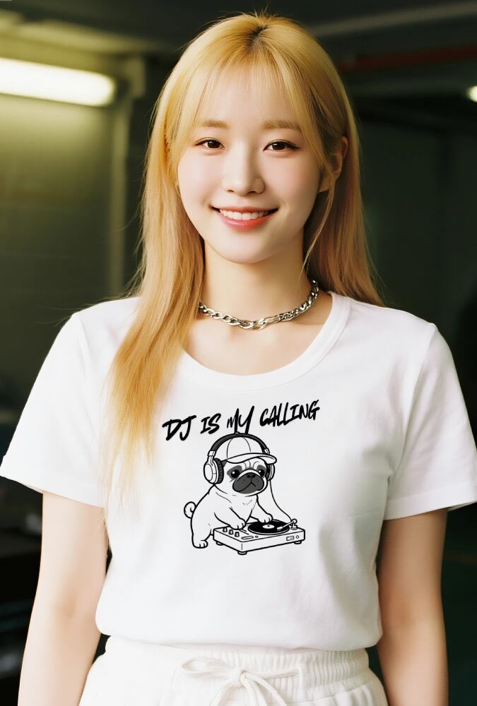 愛らしいパグがDJブースでレコードをスクラッチする姿を描いた、キュートでユニークなデザイン。「DJ is my calling (DJこそが私の天職)」というメッセージを掲げ、あなたの音楽への熱い想いを表現します。