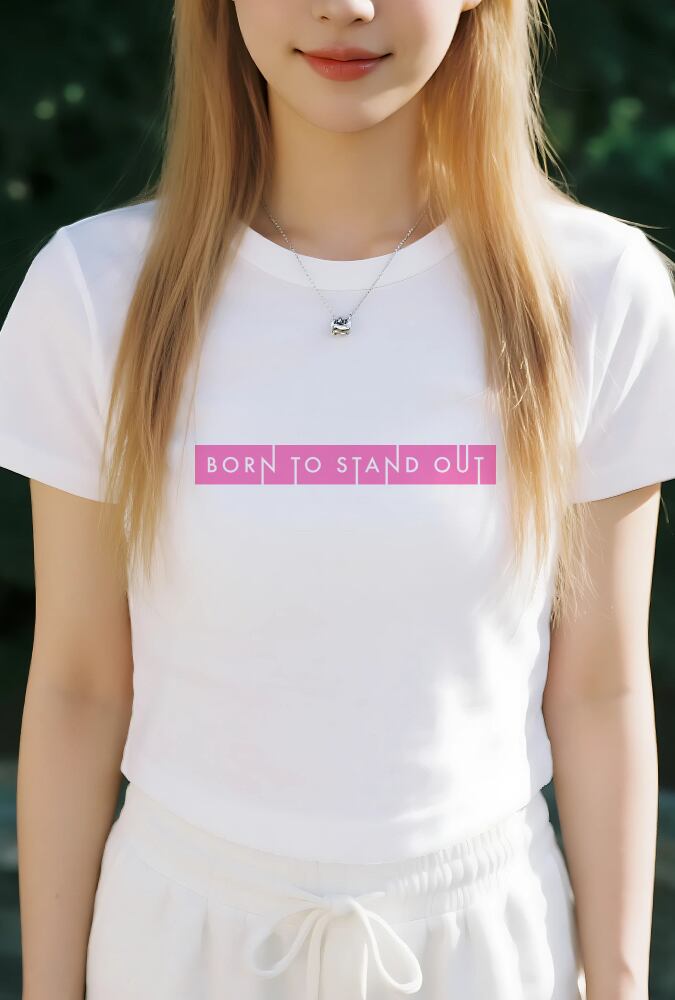 このTシャツは、あなたの個性を最大限に輝かせるための、大胆でパワフルなメッセージを込めた一枚です。「BORN TO STAND OUT(目立つために生まれた)」という言葉は、あなたが誰かの真似をするのではなく、あなた自身のユニークな魅力を堂々と表現することへの、力強い後押しとなるでしょう。