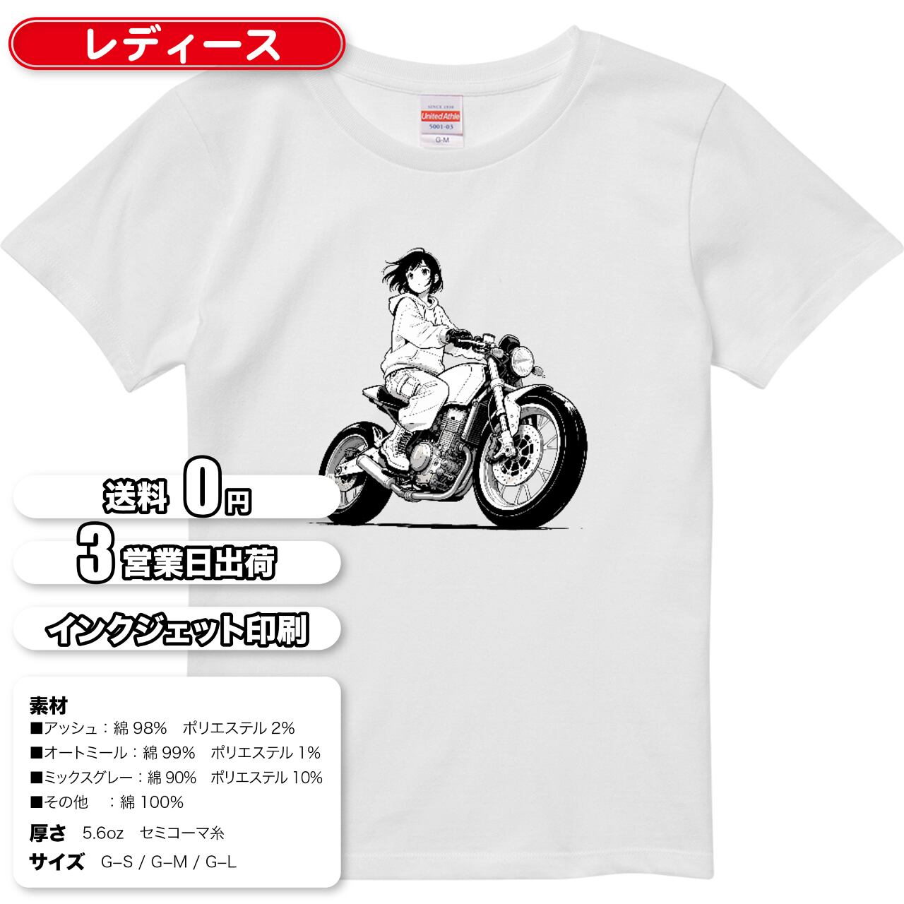 クールにバイクを走らせる少女をモノクロタッチで描いた、スタイリッシュな一枚。